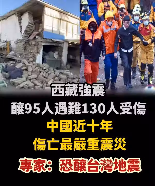 西藏強震釀95人遇難130人受傷,中國近十年傷亡最嚴重震災 專家:恐釀台灣地震
