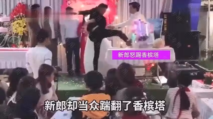 賓客們有人上前勸阻,有人拿出手機記錄下這一幕,整個婚禮現場陷入混亂。