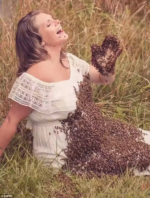 根據《Dailymail》報導,由於蜜蜂在米勒和丈夫的生命中有很特別的意義,她決定跟2萬隻蜜蜂一起拍孕照,讓蜜蜂「蓋住」孕肚,「很多人覺得我瘋了,但在拍攝期間我只被蜜蜂輕輕螫了3次,而且沒有螫在肚皮。」