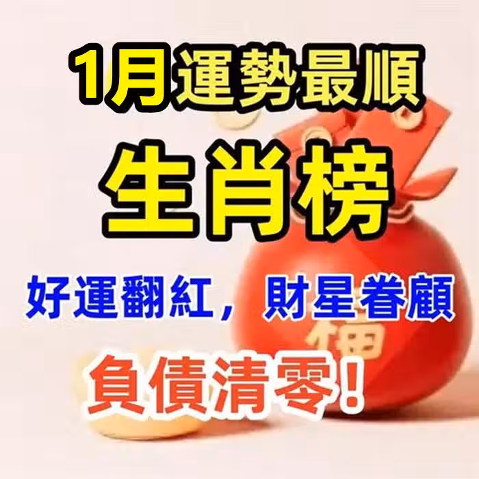 1月運勢最順生肖榜,好運翻紅,財星眷顧,負債清零!