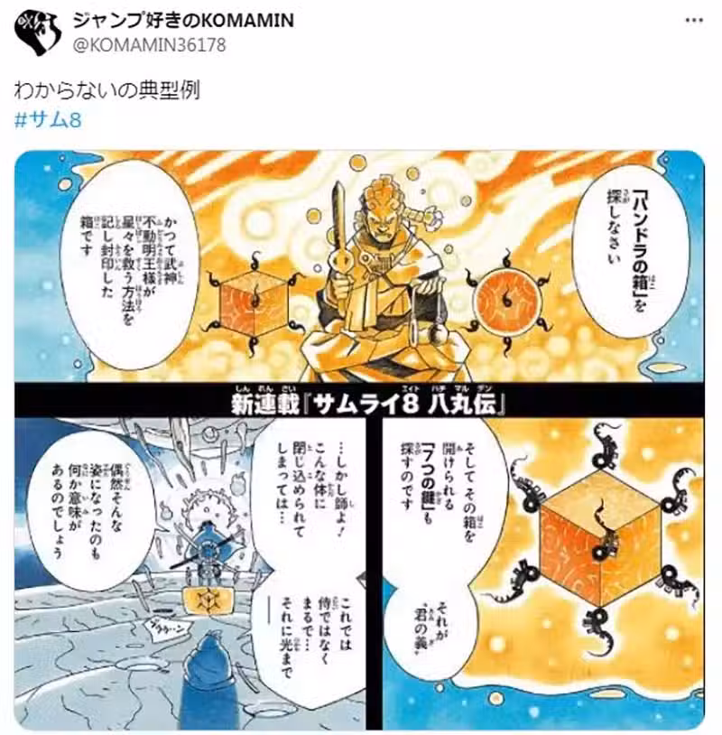 「看看《航海王》第一頁,那真的是為完美的開場。跟《SAMURAI 8 機侍 八丸傳》一比簡直是一目了然。」