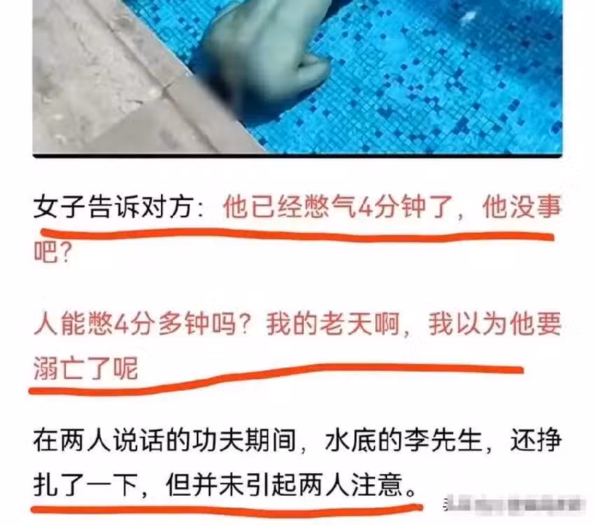 幾人你一句我一句的閒聊,絲毫沒注意到水下的李先生已經快失去意識了