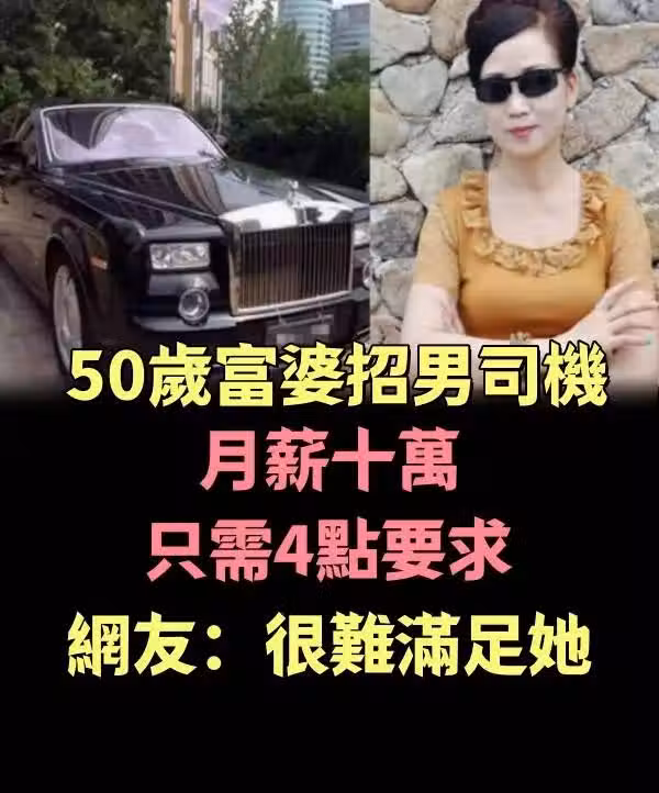 50歲富婆招男司機,月薪十萬隻需4個要求,網友:很難滿足她