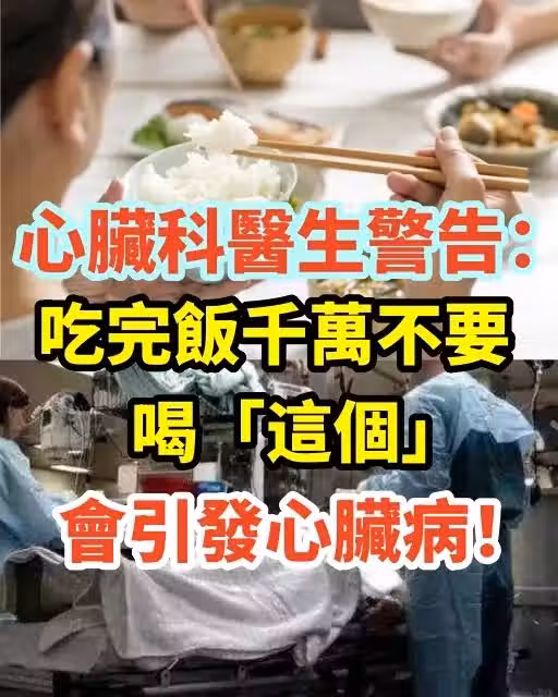 心臟科醫生警告:吃完飯千萬不要喝「這個」會引發心臟病!