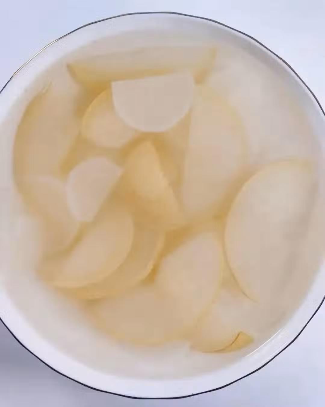 1.蘿蔔和雪梨洗凈,切片放入碗中。