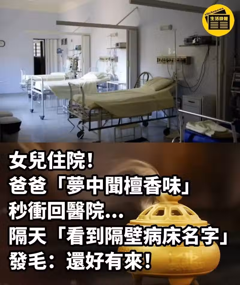 女兒住院❗爸爸「夢中聞檀香味」秒沖回醫院...隔天「看到隔壁病床名字」發毛:還好有來