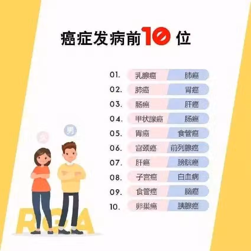 男人身上最容易長癌的器官是:肺、胃、肝、食管、腸、膀胱、胰腺、腦、淋巴、腎。