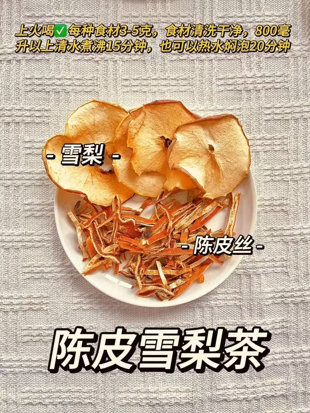 陳皮➕雪梨 適合上火時飲用。