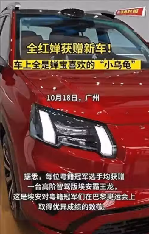 不管是從職業角度看還是從生活角度看,這輛車給她帶來的意義似乎更多是個身份象徵——獎牌是她的付出與努力的體現,而車子,則是公眾對她成就的標配獎品。