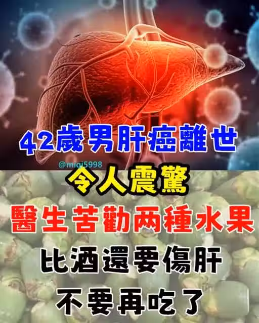 煙酒從來不沾 42歲男「肝癌離世」令人震驚 醫生苦勸兩種水果 比酒還要傷肝 不要再吃了