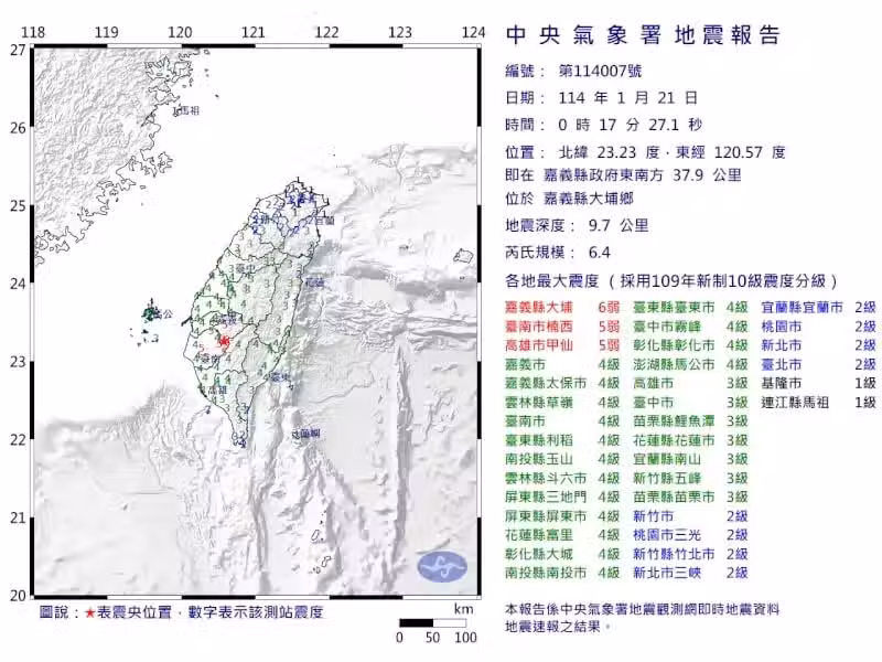 根據《TVBS新聞網》報導,嘉義縣大埔鄉在今天凌晨0時17分發生規模6.4強震,上下左右晃強烈,相似911大地震的狀況,而光是一晚就偵測到54起地震,可以說是整夜晃不停,而地震前竟出現神秘閃光現象,引發熱烈討論。
