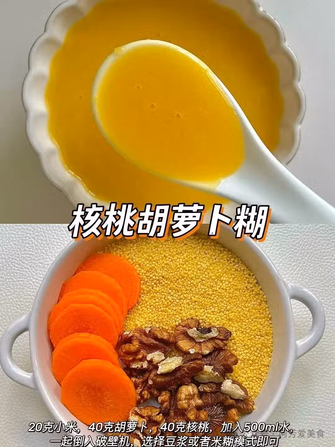 核桃胡蘿蔔糊,這款味道很特別,很適合不喜歡吃蔬菜的寶子們。混合核桃的香氣,非常的香,堅果的香味濃郁香甜,好喝極了。