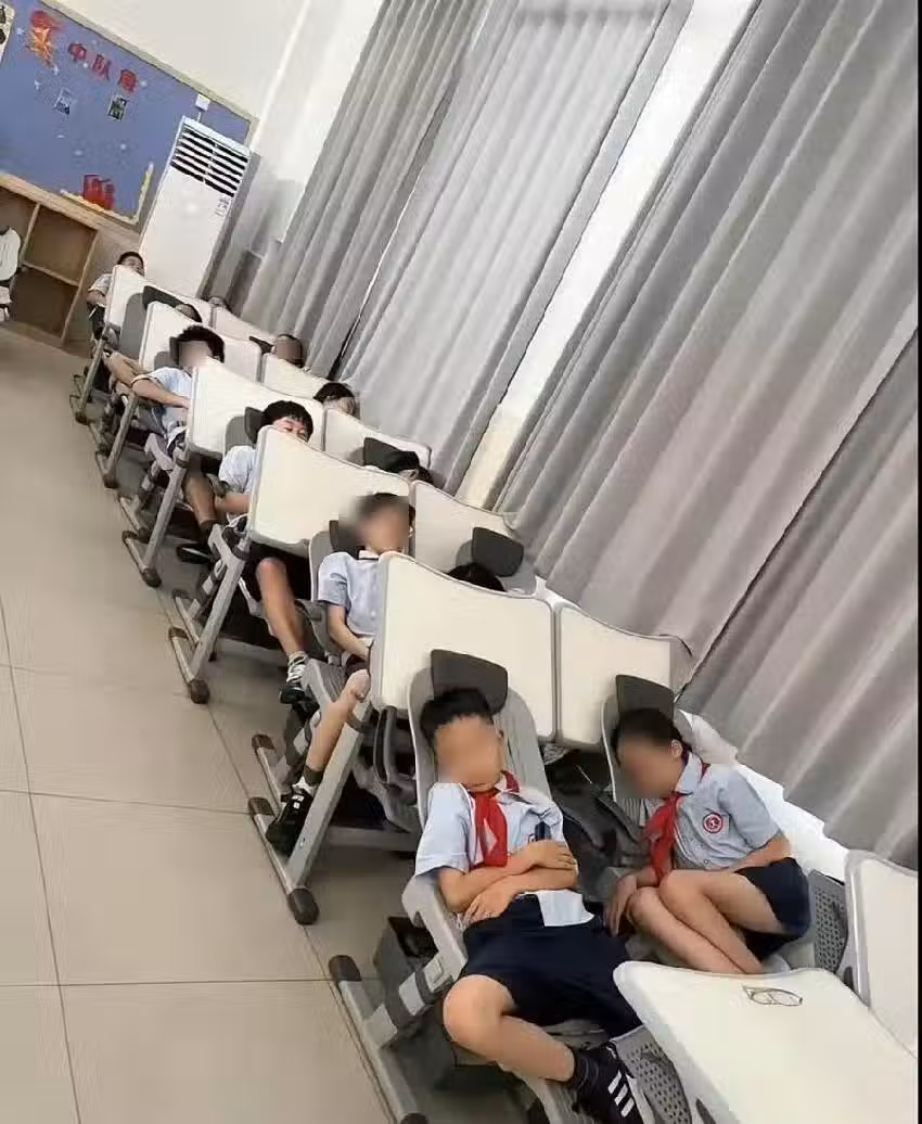 她將幾張班級學生的午睡照上傳到班級群組,並配文稱:「我們的學校真用心,給孩子們設計了這麼舒適的椅子,終於不用趴桌子睡覺了!」一開始,家長們紛紛按贊,對學校的細心安排表示認可,甚至有人感嘆:「比我小時候趴著睡舒服多了!」