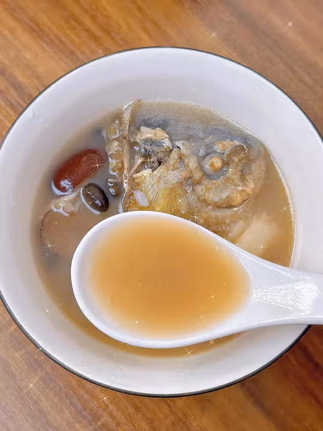 鯽魚、黑豆、山藥、紅棗、陳皮、姜