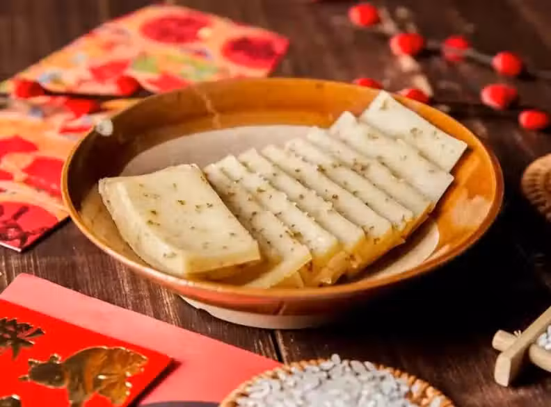 魚在中國文化中代表著年年有餘,吃魚則寓意著新的一年裡富足、有餘。「步步高升」則是吃年糕的寓意,年糕又黏又甜,象徵著生活甜甜蜜蜜、步步高升。