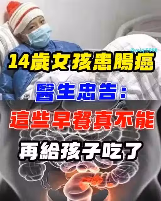 14歲女孩患腸癌 醫生忠告 這些早餐真不能再給孩子吃了……