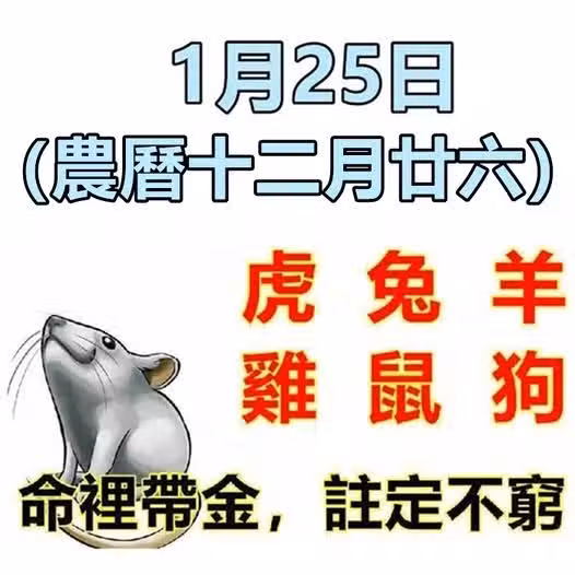 小運播報:2025年1月25日,星期六,農曆十二月廿六。