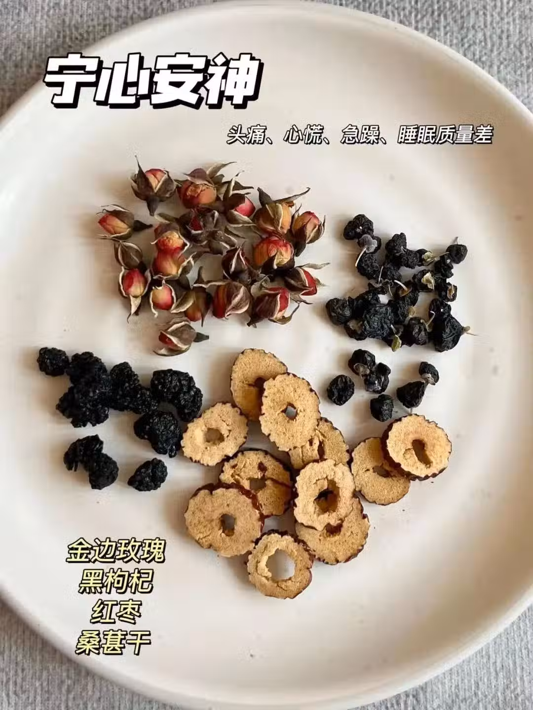 食材準備:金邊玫瑰 黑枸杞 紅棗 桑葚干