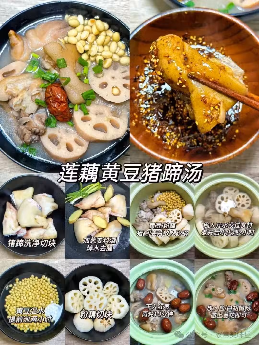 步驟一:豬蹄焯水後洗凈,放入鍋中,加入黃豆和蓮藕。