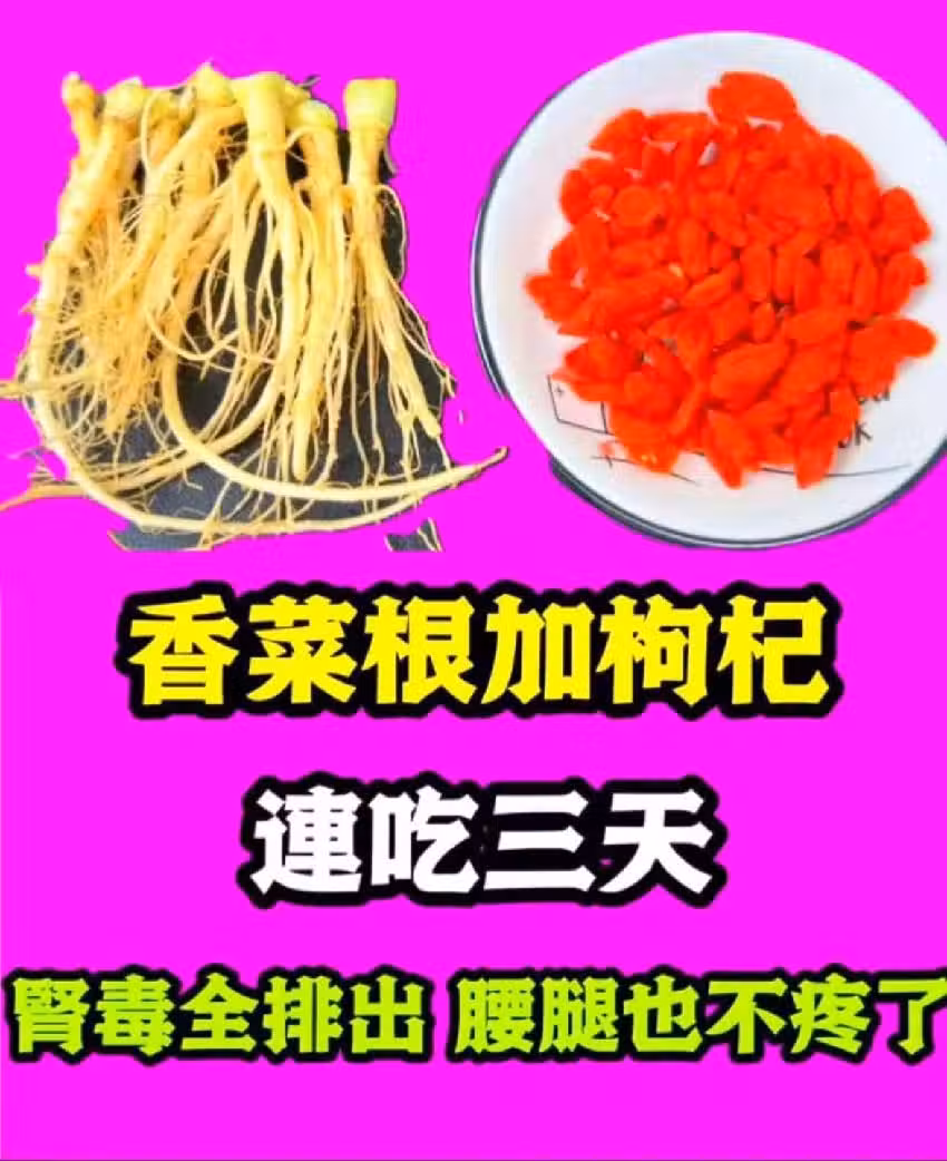 香菜根加枸杞,作用太厲害了,連吃3天,體內毒素全排空,讓你遠離腎病,夜裡不失眠了,腰腿也不疼了! !