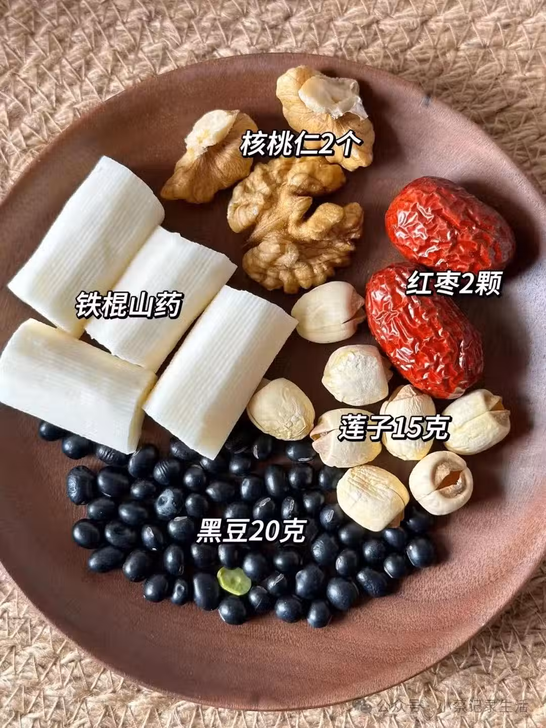 蓮子15克,核桃仁2個,黑豆20克