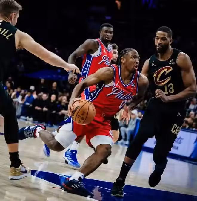 12月25日,聯盟領頭羊騎士客場挑戰76人。首節之爭雙方打出高效率的進攻大戰,騎士飆中六記三分得到33分,76人以近六成命中率狂轟39分;次節,騎士延續了首節狀態,米切爾弧頂連中三記三分,阿倫和加蘭頻頻衝擊籃下得分,而76人手感下降,半場結束落後3分;易邊再戰,雙方依舊是火力全開,喬治命中不講理三分,騎士落後兩分進入末節;末節決戰,場上局勢進入白熱化,騎士開局彈無虛發搶占先機,此後騎士就突然斷電,76人抓住機會回敬一波13-0的攻勢,騎士關鍵球權失誤葬送追分機會。最終,76人主場以132-129力克騎士。