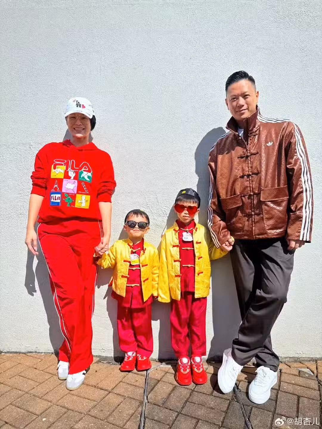 胡杏兒一家五口迎新年,三個兒子穿唐裝帥氣可愛,模樣似複製粘貼