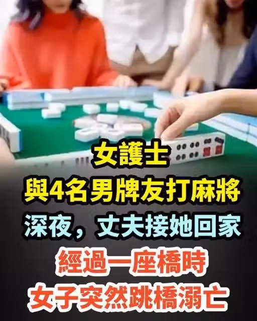 女護士與4名男牌友打麻將,深夜,丈夫接她回家,經過一座橋時,女子突然跳橋溺亡……
