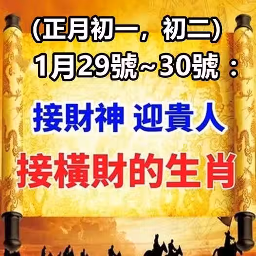 1月29號~30號(正月初一,初二):接財神 ,迎貴人,接橫財的生肖!
