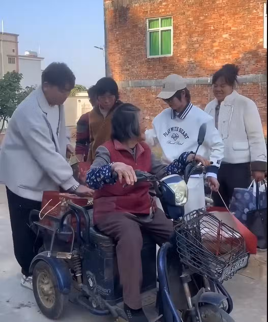 全紅嬋戴墨鏡拎禮物回家,與外孫放鞭炮過新年