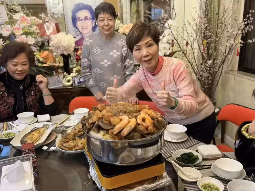 96歲白雪仙年初一在千尺豪宅設宴!巨型鮑魚待客,眾愛徒上門拜年