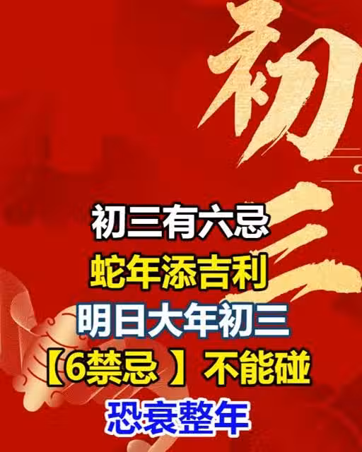 「初三有六忌,蛇年添吉利」,明日大年初三「6禁忌」不能碰,恐衰整年!