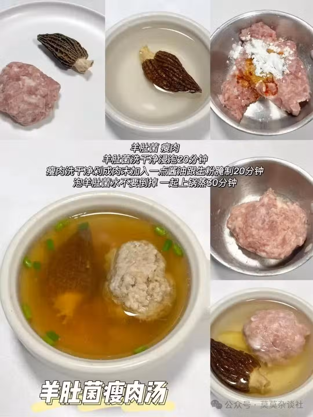 味道及功效:羊肚菌的濃郁香氣與瘦肉的鮮甜完美融合,湯鮮味美。羊肚菌富含多種胺基酸和維生素,不僅能增強免疫力,還對修復受損細胞有奇效。