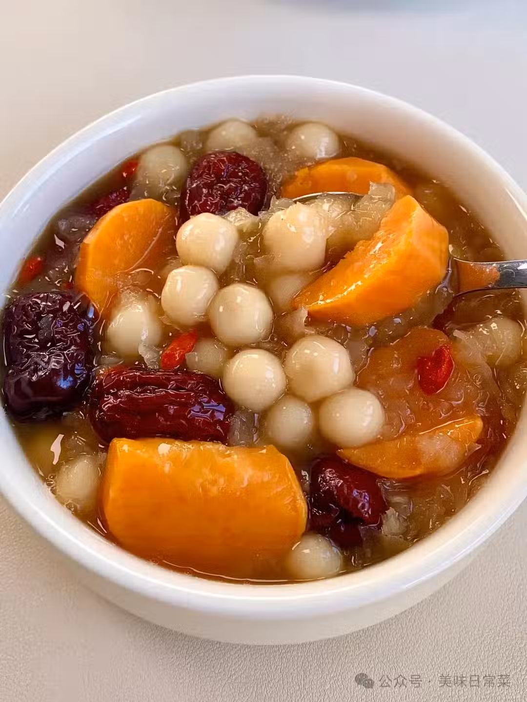 每年的秋冬養生,我都是靠這碗紅薯銀耳圓子羹度過的!紅薯軟糯,銀耳膠質滿滿,圓子嚼勁十足,喝下去暖到心裡。熬夜臉黃、手腳冰冷的姐妹別猶豫,喝它准沒錯。堅持一段時間,小臉紅撲撲,氣色好到閨蜜都羨慕!