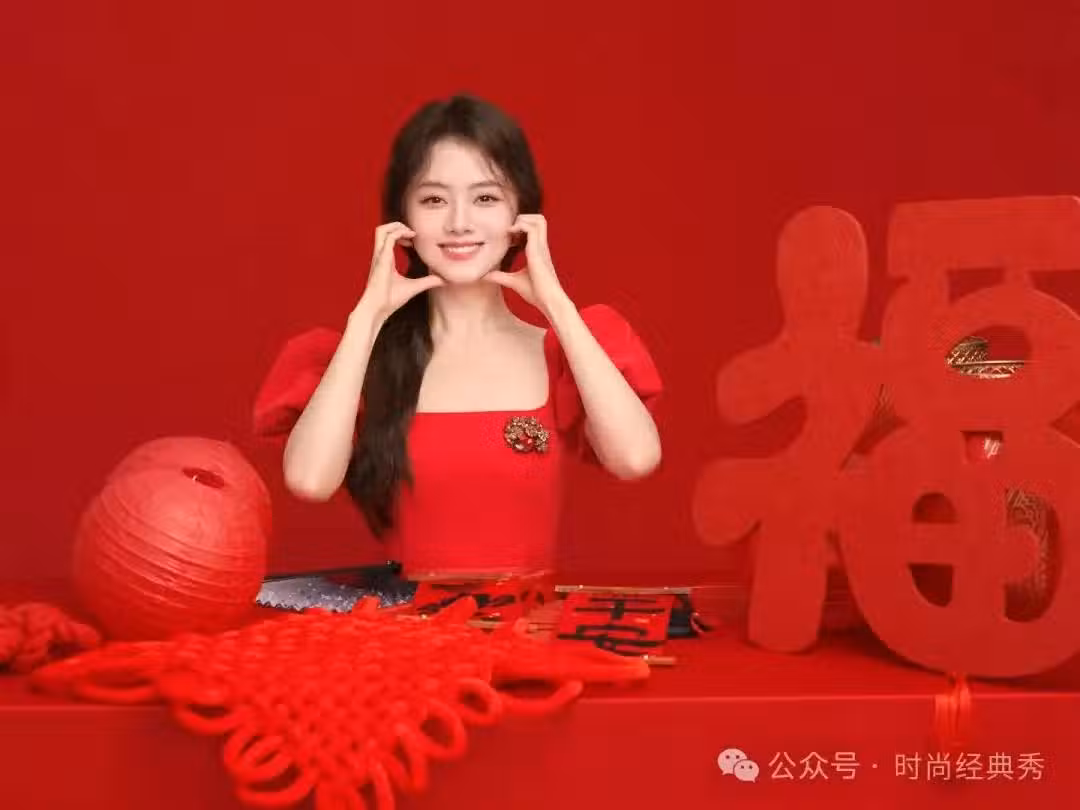 譚松韻新春時尚大片:紅裝映麗影,佳節展風華