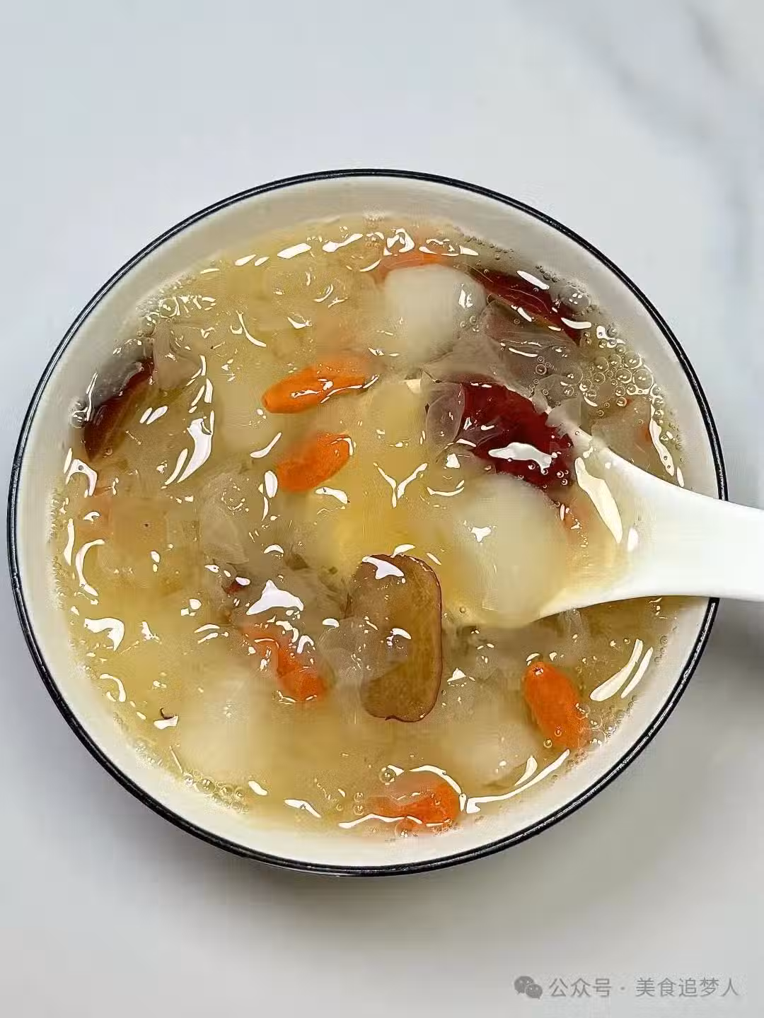 銀耳能滋潤肺部,蘋果和雪梨清熱解du,營養豐富,孩子喝了能補充津液,清理內熱,簡直就是神仙搭配