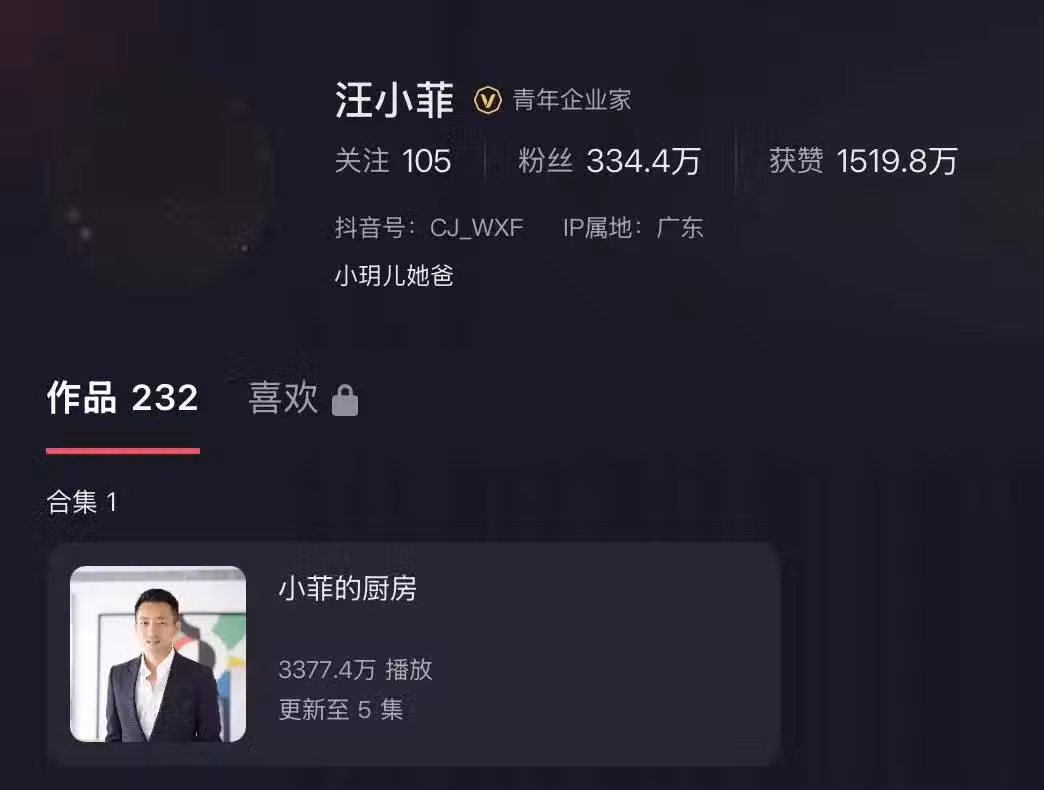 汪小菲的抖音帳號不知道何時換成黑色的。(圖/翻攝自汪小菲抖音)