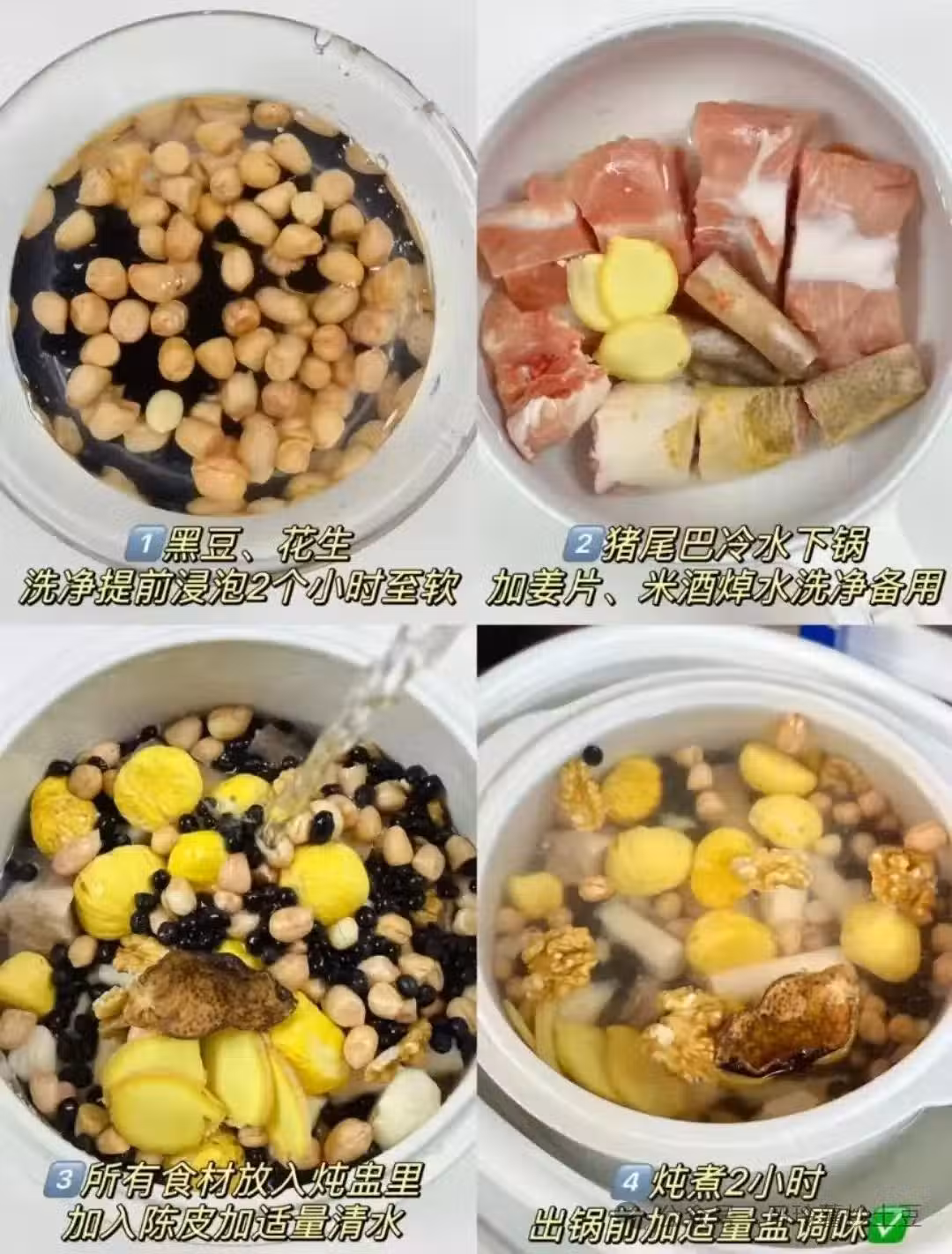 1、黑豆、花生洗凈提前浸泡2小時至軟