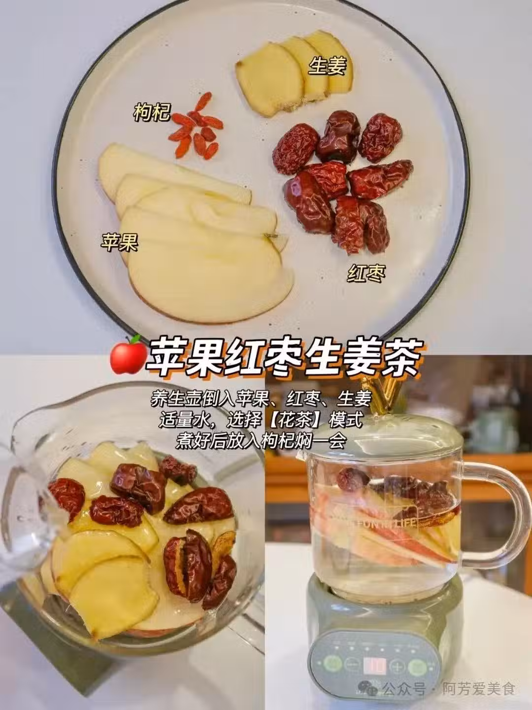 蘋果紅棗生薑茶,蘋果的香甜氣息搭配紅棗的甜味,再加入生薑的一絲辣度,整杯非常的好喝,又不會很甜,喝起來就很舒服。