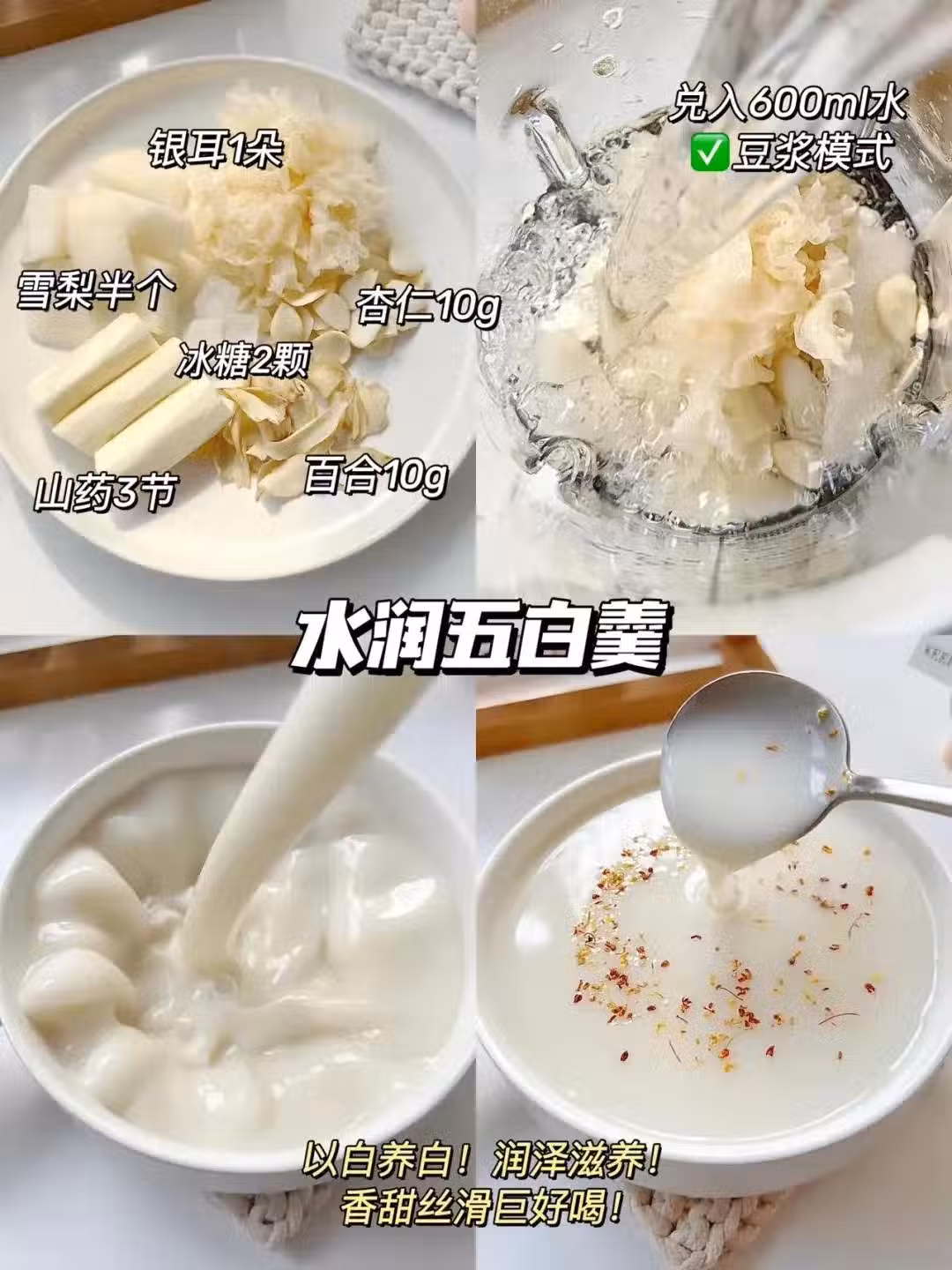 想要皮膚透亮白皙!平時就要多吃點水潤的食物!黃黑皮姐妹一定不能錯過這杯!銀耳的潤澤,山藥的滑糯,搭配百合蓮子和杏仁,每一個食材都對皮膚很友好! 3️⃣蘋果山藥小米羹 ☑️食材:蘋果半個、小米25g、胡蘿蔔半根、山藥3節