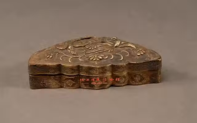 唐 鎏金刻花鸚鵡紋雲頭形銀盒。 | 來源: 陝西歷史博物館