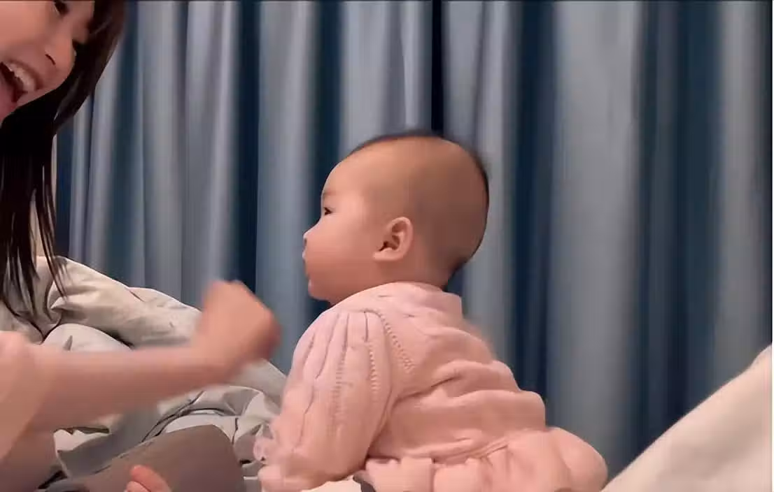 接著她又特意分享了女兒的最新狀態,只見在她上傳的短片中,小傢伙很是可愛,正在床上聽媽媽唱歌,看樣子病情已經痊癒。