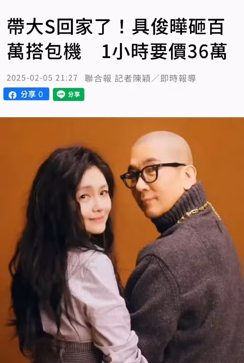 緊接著,又有台媒爆出消息,具俊曄砸百萬包機,1小時就要價36萬台幣,就是為了讓妻子安安靜靜「回家」,不被外界打擾。