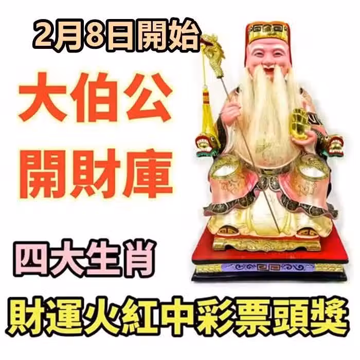2月8日開始大伯公開財庫,四大生肖財運火紅中彩票頭獎.