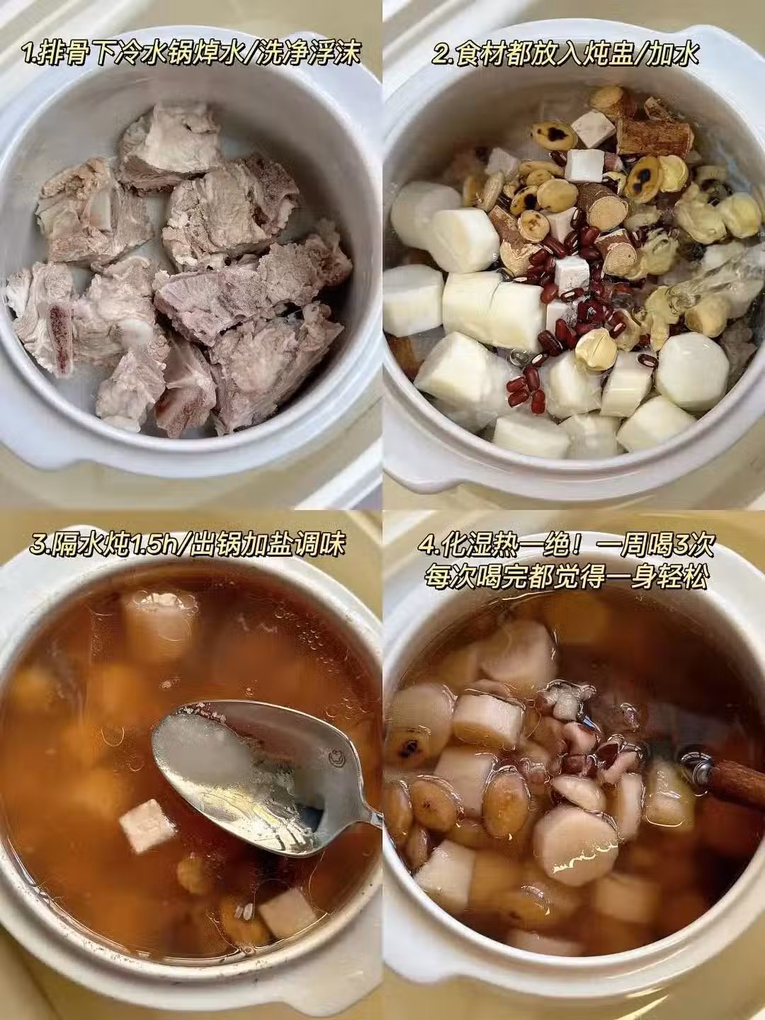 這個祛濕方子中的食材組合具有多種功效,具體如下: