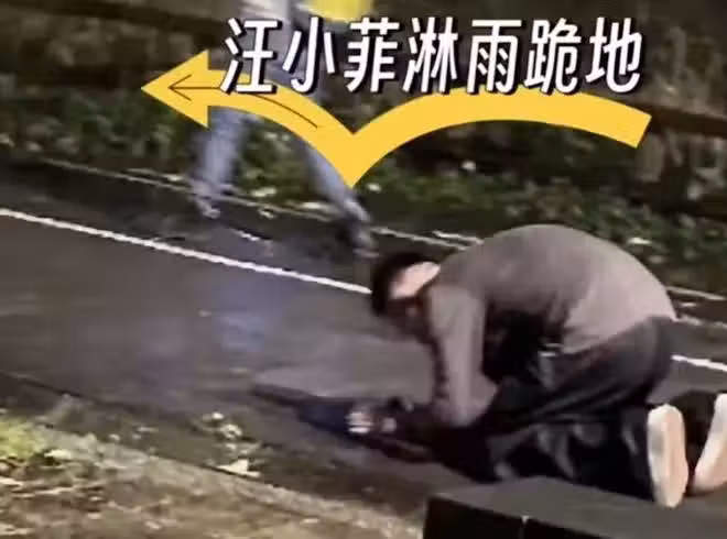 汪小菲雙膝跪地淋雨畫面瘋傳,台記者稱是做戲網批:演上癮了。