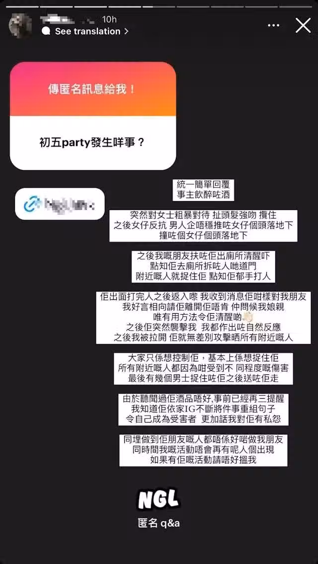 但事後可能有人心心不忿,放出長達9秒的視頻。雖然視頻中沒有看到當事人正面。但從從讀者提供的大合照中,看到區俊賢當晚確實與片中男子穿上同款鮮紅色衛衣,而事發後區俊賢也有在社交平台分享同一張大合照,場地布局跟少女被非禮的現場是一模一樣!