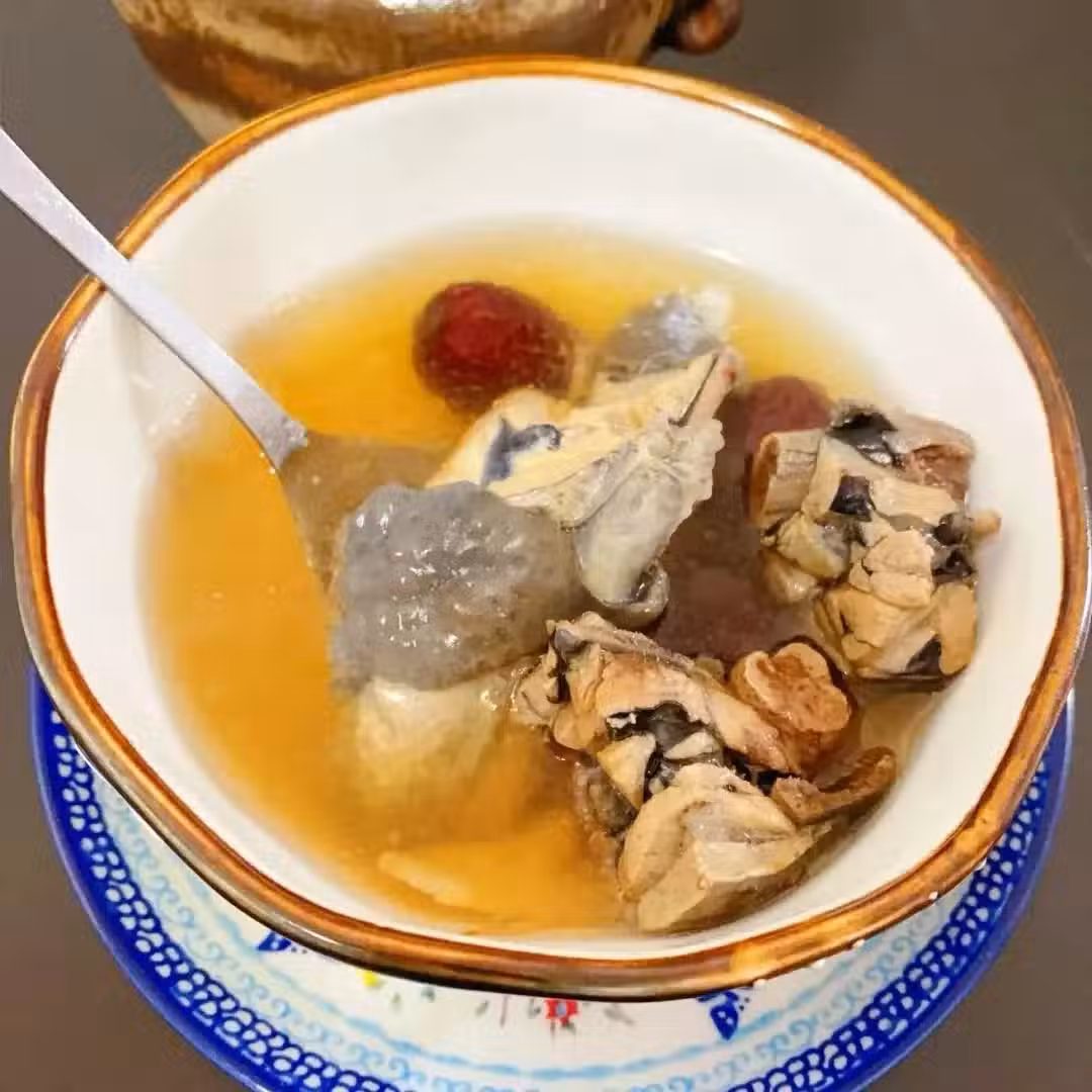 食材用量:靈芝15克、烏雞半隻、紅棗5顆、枸杞10克、薑片適量、鹽少許。