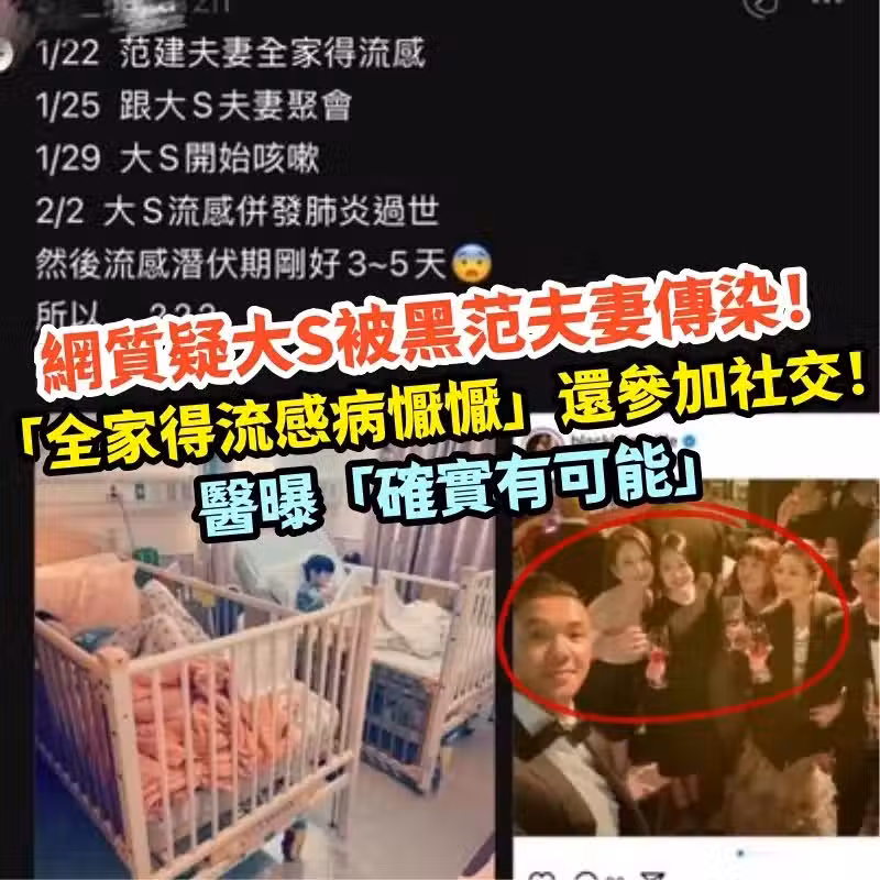 網質疑大S被黑范夫妻傳染!「全家得流感病懨懨」還參加社交!醫曝「確實有可能」