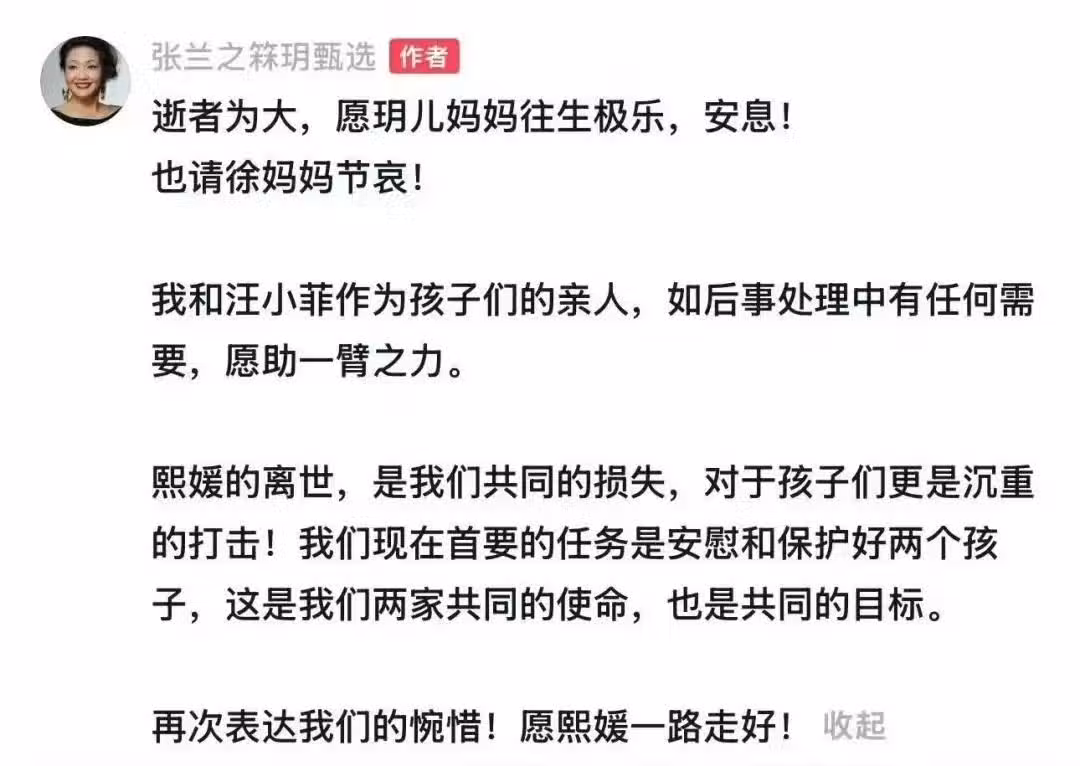 媒體形容說,「汪小菲的心,黑了一下」。 下午汪小菲還被拍到已經飛去台灣。 他的眼睛哭腫了,對著媒體鞠躬,「熙媛是我家人,求你們多說些她的好話」。